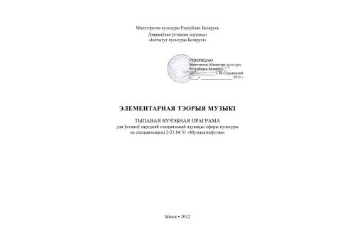 عنوان اصلی | Учебная программа – Элементарная тэорыя музыкі. Тыпавая вучэбная праграма |