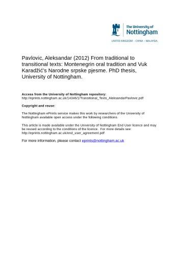عنوان فارسی | از متون سنتی تا انتقالی: سنت شفاهی مونته نگرو و Narodne srpske pjesme اثر Vuk Karadžić |