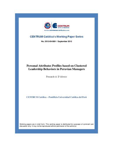 | عنوان اصلی | Personal Attributes Profiles based on Clustered Leadership Behaviors in Peruvian Managers |