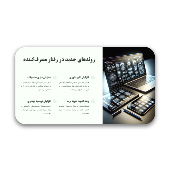 3. محتوای علمی و کاربردی: این قالب شامل تمامی اطلاعات کلیدی درباره رفتار مصرف‌کننده است و می‌تواند به کسب‌وکارها در بهبود استراتژی‌های بازاریابی کمک کند.