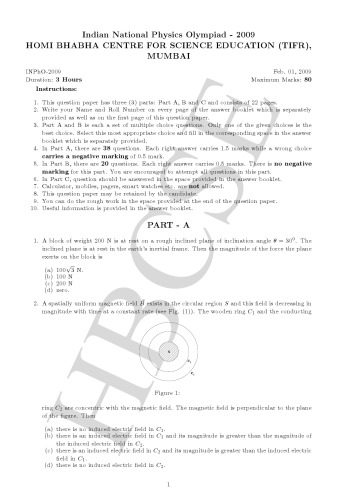 مقاله INPhO 2009 فیزیک از المپیاد ملی فیزیک هند