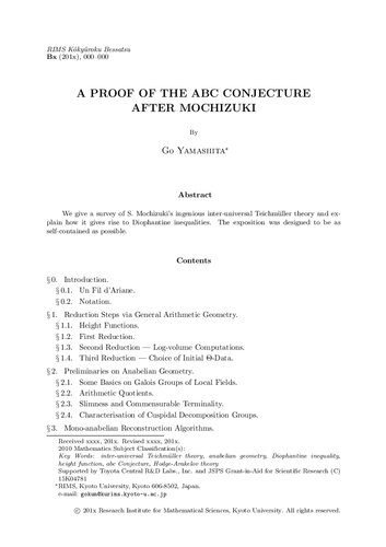 | عنوان اصلی | A proof of the abc conjecture after Mochizuki |