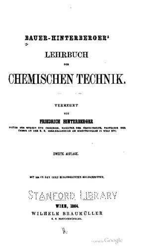 | عنوان اصلی | Bauer-Hinterberger’s Lehrbuch der Chemischen Technik |