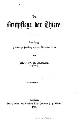 | عنوان اصلی | Die Brutpflege der Thiere. Vortrag, gehalten zu Hamburg am 19. November 1890 |