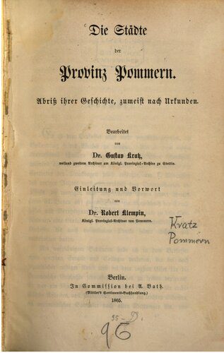 عنوان اصلیDie Städte der Provinz Pommern. Abriss ihrer Geschichte, zumeist nach Urkunden