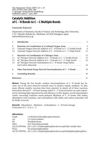 | نویسنده | Naoto Chatani, L. Ackermann, B. Breit, C.-H. Jun, F. Kakiuchi, D. Kalyani, M. Miura, M. Oestreich, J.-W. Park, M.S: Sanford, T. Satoh |
