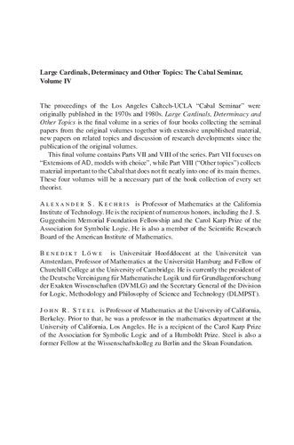 | عنوان اصلی | Large Cardinals, Determinacy and Other Topics – The Cabal Seminar, Volume IV |