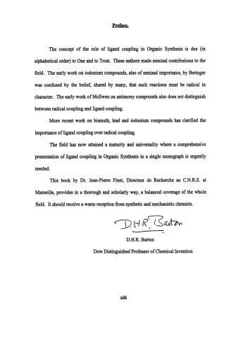 کل زمینه جفت لیگاند تنها در دهه گذشته به عنوان پایه ای برای تحولات مصنوعی جدید پدیدار شده است. همانطور که پروفسور فینت در این بررسی جامع نشان میدهد، شفافسازی اخیر مکانیسمهای واکنش فرآیند جفت لیگاند در اطراف مراکز هترواتم، اکنون درک درستی از این واکنشها را فراهم میکند که مطمئناً کاربرد آنها را در سنتز آلی مجاز میسازد، در نتیجه به تبدیلهایی دست مییابد که دستیابی به آنها بسیار دشوار است. با روش های دیگر این کتاب به شیوه ای کامل و علمی، پوشش متعادلی از کل حوزه را ارائه می دهد.