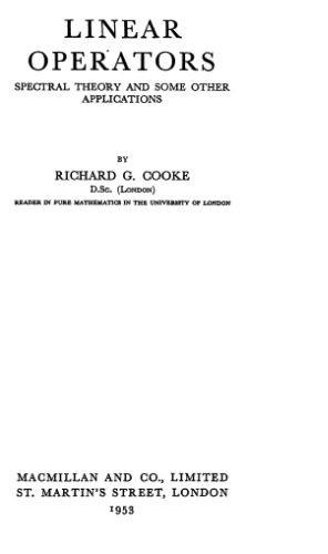 خرید و دانلود نسخه کامل کتاب Linear Operators: Spectral Theory and Some Other Applications