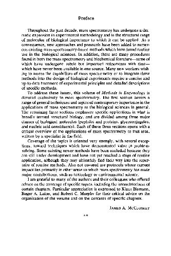 این جلد مجموعه ای از روش ها و اصول تجربی را با پروتکل ها و مثال های دقیق ارائه می دهد. تکنیک هایی که ارزشی را در حل مسئله نشان داده اند گنجانده شده اند. این کتاب برای بیوشیمیها، زیستشناسان سلولی، میکروبیولوژیستها، فارماکولوژیستها، دانشمندان بیوپزشکی، بیوفیزیکدانان، شیمیدانان تحلیلی و فیزیولوژیستها در نظر گرفته شده است، این کتاب بر طیفسنجی جرمی تمرکز دارد. موضوعات مورد بحث شامل روش های یونیزاسیون، کروماتوگرافی مایع، طیف سنجی جرمی بمباران اتمی سریع جریان پیوسته، تفکیک ناشی از برخورد، هضم آنزیمی و شیمیایی پروتئین ها، و ترکیبات اسیدهای نوکلئیک می باشد. عناوین دیگر این مجموعه عبارتند از راهنمای ژنتیک مخمر و زیست شناسی مولکولی و رتینوئیدها، قسمت B: تمایز سلولی و کاربردهای بالینی.