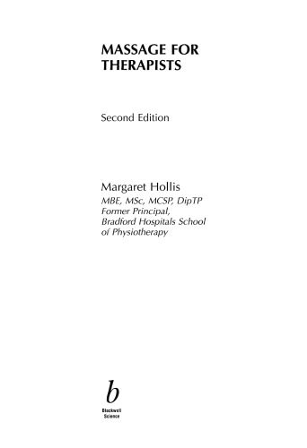 این نسخه جدید، سومین نسخه ماساژ برای درمانگران، بهروزرسانی به موقع و کاملی است که سنت رویکرد عملی مارگارت هالیس را ادامه میدهد. این کتاب به گونه ای طراحی شده است که راهنمای گام به گام تئوری و کاربرد عملی ماساژ کلاسیک باشد. پس از تسلط، این تکنیک ها ممکن است مبنایی برای انواع تغییرات مناسب برای شرایط خاص باشد. ماساژ یک مهارت اساسی در فیزیوتراپی است و نیاز به استاندارد بالایی از کاربرد عملی دارد. این مهارتی است که به طور فزاینده ای توسط سایر متخصصان مراقبت های بهداشتی و درمان تکمیلی در حال استفاده است. ماساژ برای درمانگران به سه بخش تقسیم می شود: مقدمه ای برای ماساژ و آماده سازی برای انجام ماساژ. دستکاری ماساژ بر اساس ناحیه بدن؛ و برخی تغییرات کلیدی در دستکاری های استاندارد. به منظور تقویت بیشتر مهارت پزشک و دادن پایه به خواننده در برخی از تخصصهای محبوب، فصلهای بهروز شده در مورد رایحهدرمانی و ماساژ در ورزش در کنار فصلهای جدیدی قرار گرفتهاند که انتشار میوفاشیال و شیاتسو را معرفی میکنند. ماساژ برای درمانگران مورد علاقه دانشجویان و فیزیوتراپیست های واجد شرایط و ورزش درمانگران و همچنین کاردرمانگران، کایروپراکتیک ها، استئوپات ها، پرستاران، درمانگران مکمل و درمانگران زیبایی خواهد بود.