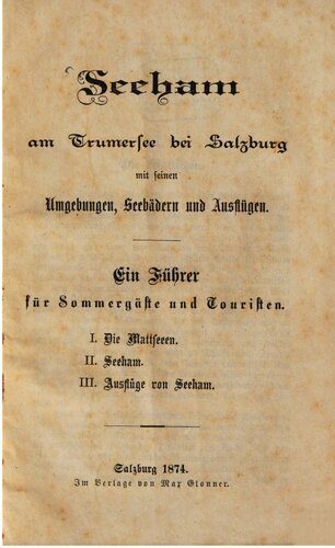 | عنوان اصلی | Seeham am Trumersee bei Salzburg mit seinen Umgebungen, Seebädern und Ausflügen ; ein Führer für Sommergäste und Touristen |