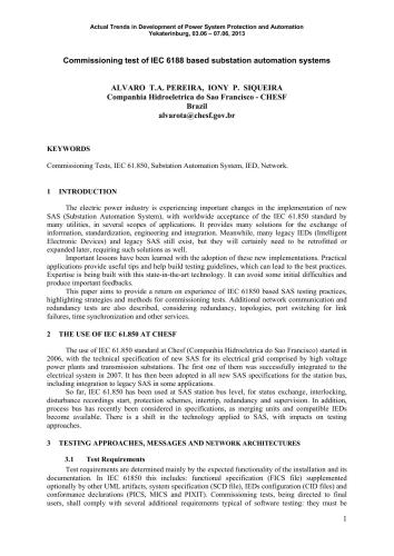 | عنوان اصلی | Siquera. Commissioning test of IEC 6188 based substation automation systems |