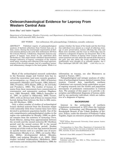 عنوان اصلی | Soren Blau and Vadim Yagodin. Osteoarchaeological Evidence for Leprosy From Western Central Asia |