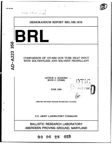 (Artur A. Kochoru, Irvin S. Stobi. Сравнение нагрева артиллерийского ствола 155-мм орудия при использовании порохов с и без растворителя).