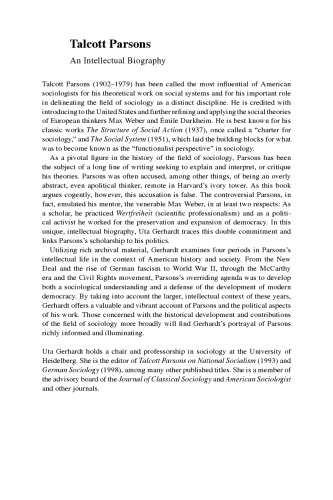 تالکوت پارسونز، جامعهشناس آمریکایی، اغلب متهم میشد که متفکری بیش از حد انتزاعی و حتی غیرسیاسی است که در برج عاج هاروارد دور افتاده است. یوتا گرهارت این تصویر را در روایت جذاب خود از ماهیت سیاسی زندگی و دانش پارسونز از بین می برد. گرهارت پارسونز را به عنوان قهرمان جامعه و دموکراسی آمریکا به تصویر می کشد. در این رابطه او از راهنمای بزرگوارش، ماکس وبر پیروی کرد. گرهارت استدلال می کند که کار پارسونز توسط یک دستور کار اساسی برای توسعه درک جامعه شناختی و دفاع از توسعه دموکراسی مدرن هدایت می شود.