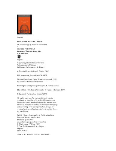 | عنوان اصلی | The Birth of the Clinic: An Archaeology of Medical Perception |