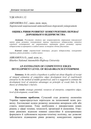 | عنوان اصلی | Оцінка рівня розвитку конкурентних переваг дорожнього підприємства |