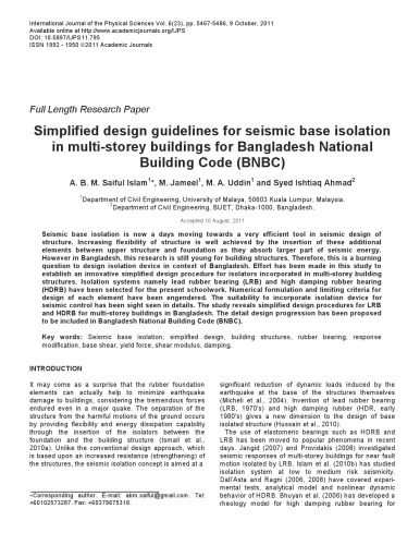 عنوان اصلی | 2011_Islam_Simplified design guidelines for seismic base isolation in multi-storey buildings forBNBC |