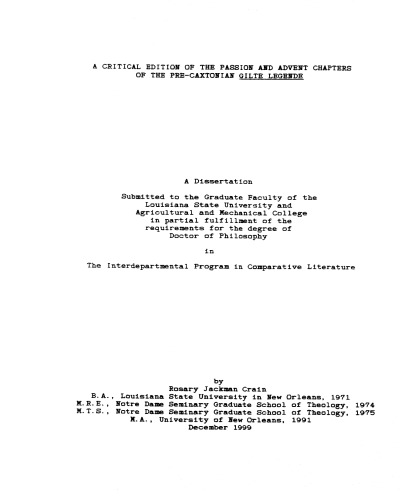عنوان اصلی | A critical edition of the Passion and Advent chapters of the Pre-Caxtonian Gilte Legende |