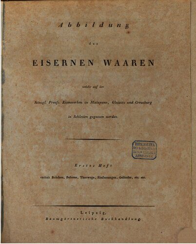 | عنوان اصلی | Abbildung der eisernen Waren welche auf den Königl.Preuss. Eisenwerken zu Malapane, Gleiwitz und Creuzburg in Schlesien gegossen werden |