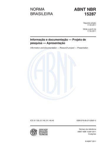 | عنوان اصلی | [ABNT NBR 15287:2011] Informação e documentação — Projeto de pesquisa — Apresentação |