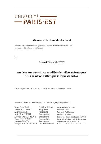 عنوان اصلی | Analyse sur structures modèles des effets mécaniques de la réaction sulfatique interne du béton [diss.] |