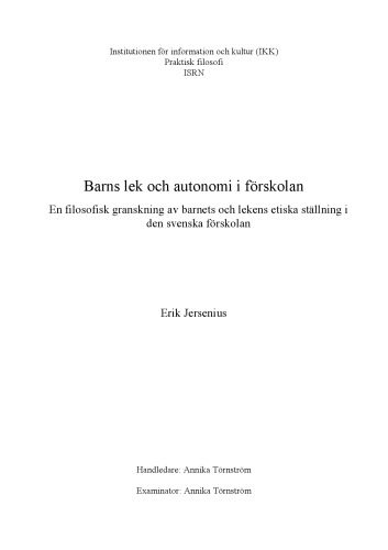| عنوان اصلی | Barns lek och autonomi i förskolan |