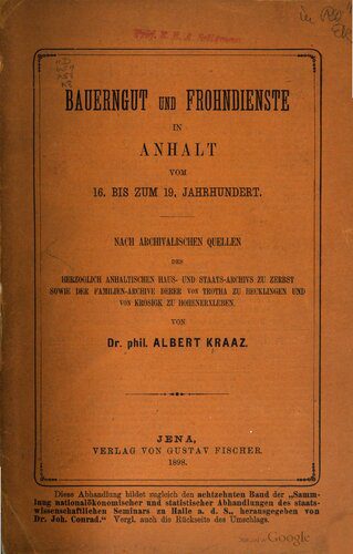 خرید و دانلود نسخه کامل کتاب Bauerngut und Frohndienste[Frondienste] in Anhalt vom 16. bis zum 19.Jahrhundert