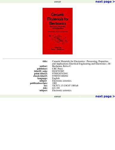 | عنوان اصلی | Ceramic Materials for Electronics: Processing, Properties, and Applications |