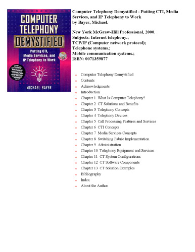 | عنوان اصلی | Computer telephony demystified: putting CTI, media services, and IP telephony to work |