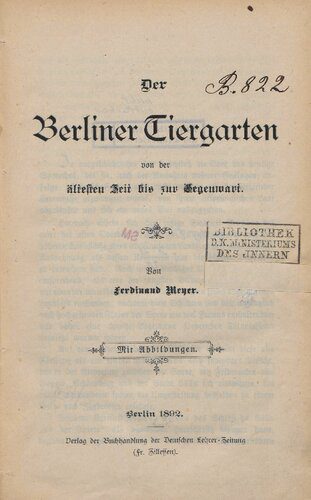 عنوان اصلیDer Berliner Tiergrten von der ältesten Zeit bis zur Gegenwart