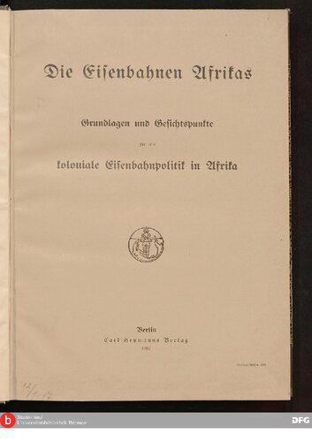 | عنوان اصلی | Die Eisenbahnen Afrikas ; Grundlagen und Gesichtspunkte einer Eisenbahnpolitik im Afrika |