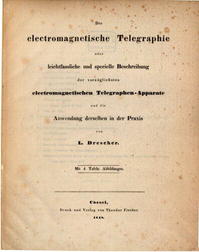 | عنوان اصلی | Die elektromagnetische Telegraphie oder leichtfassliche und spezielle Beschreibung der vorzüglichsten elektromagnetischen Telegraphen-Apparate und die Anwendung derselben in der Praxis |