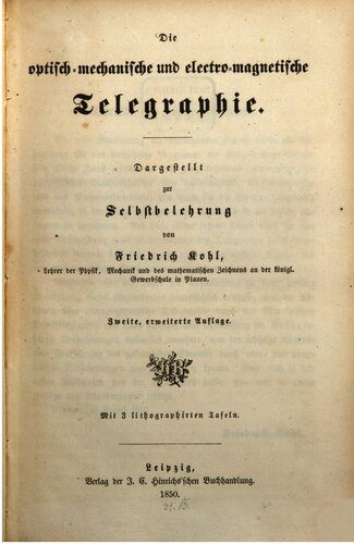 | عنوان اصلی | Die optisch-mechanische und elektromagnetische Telegraphie ; dargestellt zur Selbstbelehrung |