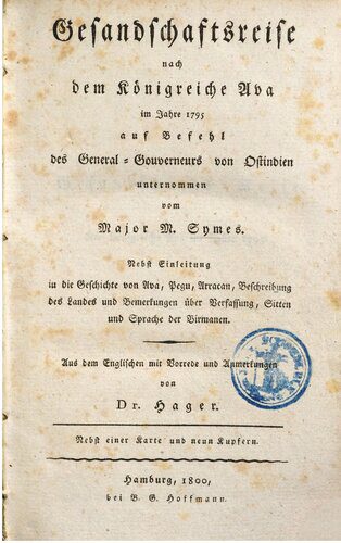 خرید و دانلود نسخه کامل کتاب Gesandtschaftsreise nach dem Königreiche Ava im Jahre 1795 auf Befehl des General-Gouverneurs von Ostindien ; nebst Einleitung in die Geschichte von Ava, Pegu, Arracan [Arakan], Beschreibung des Landes und Bemerkugen über Verfassung, Sitten und Sprache der Birmanen