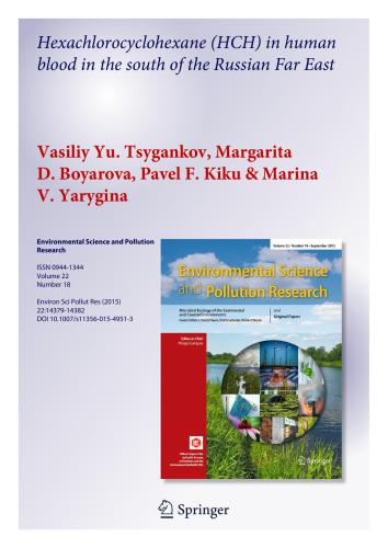 محتوای آفت کش های آلی کلر در خون ساکنان خاور دور روسیه ارزیابی می شود. در بین ایزومرهای هگزا کلروسیکلوهگزان، تنها β-HCH یافت شده است. این واقعیت نشان می دهد که آلودگی محیط زیست و موجودات انسانی توسط این آفت کش از مدت ها قبل آغاز شده است. غلظت آن از 2060 تا 22230 نانوگرم در گرم لیپید متغیر است. منابع احتمالی ماده سمی موجود در موجودات انسانی مورد بحث قرار گرفته است.