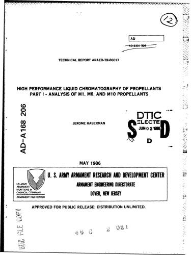 خرید و دانلود نسخه کامل کتاب High performance liquid chromatography of propellants. Part I – analysis of M1, M6, and M10 propellants