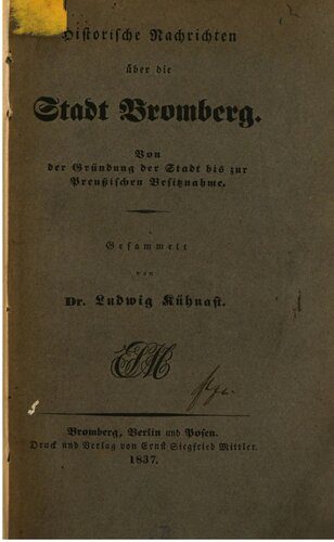 خرید و دانلود نسخه کامل کتاب Historische Nachrichten über die Stadt Bromberg. Von der Gründung der Stadt bis zur preußischen Besitznahme