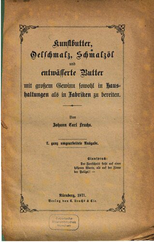 | عنوان اصلی | Kunstbutter, OelsPDFalz, SPDFalzöl und entwässerte Butter mit großem Gewinn sowohl in Haushaltungen als in Fabriken zu bereiten |