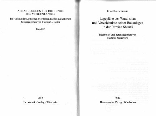 ارنست بورشمن (1873-1949) به عنوان پیشگام در مطالعه معماری چین شناخته می شود. در طول سفرهای خود در چین از سال 1906 تا 1909، او از آثار تاریخی سراسر کشور عکاسی، طراحی و اندازهگیری کرد و نتایج خود را در تعدادی از مجلدات چشمگیر مانند معماری و فرهنگ مذهبی چینیها (شامل یک جلد در جزیره پوتوئو) منتشر کرد. در مورد بناهای تاریخی و زیارتگاه ها و بخش اول مطالعه سیستماتیک استوپاها)، دو جلد در مورد معماری چینی، دیگری در مورد سرامیک های معماری، و مجموعه ای عالی از عکس های چین باستان. بورشمن در توصیف معابد و صومعههای ووتای شان در استان شانشی، یک روش تحقیق جدید را بر اساس این اعتقاد که نتایج تحقیقات مورد نظر را تنها از طریق ترکیب معماری و نقشهکشی میتوان به دست آورد، مثال زد. او تمام اطلاعات موجود در مورد ساختمان ها (از جمله اطلاعات خود از سفرهای قبلی) را جمع آوری کرد، آنها را بررسی کرد و در عین حال نقشه های توپوگرافی برای نشان دادن موقعیت دقیق آنها تهیه کرد. در حالی که “نقشه برداری بناهای تاریخی” در حال حاضر یک روش تثبیت شده است، Boerschmann احتمالاً اولین محققی بود که به طور سیستماتیک از آن استفاده کرد. این جلد، ویرایش شده توسط هارتموت والراونز، حاوی مقاله بورشمن در مورد بناهای تاریخی ووتای، شامل کتابشناسی به روز شده، و ترجمه آلبرت گرونودل (1856-1935) از توصیف تبتی از ووتای شان توسط lCa?-skya Khutukhtu rdo-pa’ است. -رج (با نمایه). نقشه های توپوگرافی ایجاد شده توسط Boerschmann بر روی CD گنجانده شده است.