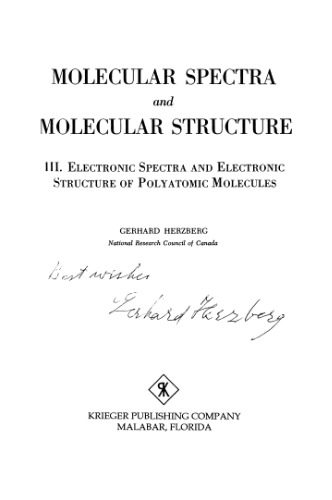 | عنوان اصلی | Molecular Spectra and Molecular Structure III – Electronic Spectra and Electronic Structure of Polyatomic Molecules |