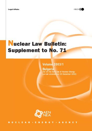 خرید و دانلود نسخه کامل کتاب Nuclear Law Bulletin: Bulgaria: Act on the Safe Use of Nuclear Energy (as Last Amended on 29th December 2002): June No. 71 Volume 2003 Supplement 1