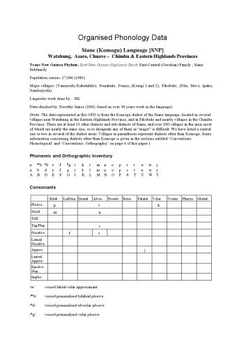 عنوان اصلیOrganised Phonology Data. Siane (Komogu) Language [SNP]. Watabung, Asaro, Chuave – Chimbu & Eastern Highlands Provinces