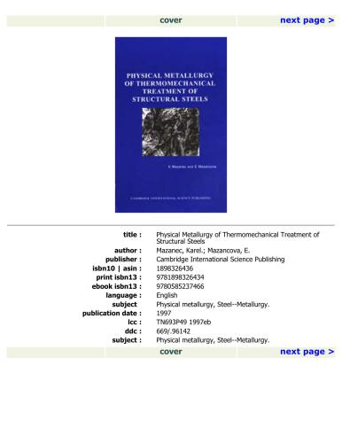 خرید و دانلود نسخه کامل کتاب Physical Metallurgy of Thermomechanical Treatment of Structural Steels