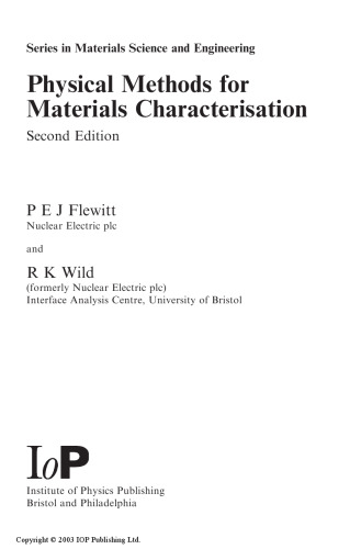 در ویرایش دوم این متن محبوب، نویسندگان شرح جامعی از طیف وسیعی از تکنیکهایی که در حال حاضر برای توصیف ریزساختار مواد استفاده میشوند، ارائه میکنند. فصل های مقدماتی فیزیک پایه مورد نیاز برای توصیف ریزساختار مواد و برهم کنش آنها با انواع مختلف تابش را پوشش می دهد. بسیاری از سخت افزارهای درگیر در این تکنیک ها به یک محیط خلاء وابسته است، بنابراین یک فصل کامل به این موضوع اختصاص داده شده است. سپس تکنیکهای مشخصهسازی بر اساس تابش بازجویی، با فصلهای جداگانهای که به تکنیکهای نوری و اشعه ایکس، میکروسکوپ الکترونی و طیفسنجی، و میکروسکوپ یونی و ذرهای و طیفسنجی میپردازند، تقسیم میشوند. در هر فصل، مطالبی ارائه شده است که منابع تشعشع، ساخت و چیدمان ابزار دقیق و تجزیه و تحلیل داده ها را پوشش می دهد. این نسخه که به طور کامل در سرتاسر بازنگری شده است، تغییرات سریعی را که اخیراً رخ داده است را منعکس می کند. این شامل مواد اضافی در مورد طیف وسیعی از روشها، از جمله تکنیکهای کاوشگر اسکن است که نیاز به تجزیه و تحلیل مواد در مقیاس نانو را منعکس میکند، و بررسی دقیق پیشرفتهای اخیر در تجزیه و تحلیل دادهها و تکنیکهای محاسباتی. Physical Methods for Materials Characterisation، ویرایش دوم برای دانشجویان پیشرفته، کارشناسی ارشد، و محققان در فیزیک، علم مواد و مهندسی جالب خواهد بود.