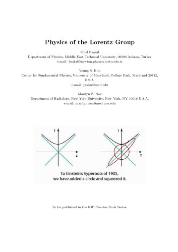 این کتاب گروه ریاضی لورنتس را به زبانی آشنا برای فیزیکدانان توضیح می دهد. در حالی که گروه چرخش سه بعدی یکی از ابزارهای ریاضی استاندارد در فیزیک است، گروه لورنتس از فضای چهار بعدی مینکوفسکی هنوز برای اکثر فیزیکدانان امروزی بسیار عجیب است. این زبان نقش اساسی در درک ذرات در حال حرکت با سرعت نزدیک به نور دارد و در حال تبدیل شدن به زبان ضروری برای اپتیک کوانتومی، اپتیک کلاسیک و علم اطلاعات است. این کتاب بر اساس مقالات و کتابهای منتشر شده توسط نویسندگان در مورد بازنماییهای گروه لورنتس بر اساس نوسانگرهای هارمونیک و کاربردهای آنها در فیزیک انرژی بالا و توابع ویگنر قابل اجرا در اپتیک کوانتومی است. همچنین نمایشهای دو در دو گروه لورنتس را که برای اپتیک پرتویی، از جمله اپتیک حفره، چندلایه و لنز، و همچنین نمایشهای گروه لورنتس قابل اعمال برای پارامترهای استوکس و کره پوانکاره در اپتیک پلاریزاسیون، را پوشش میدهد.