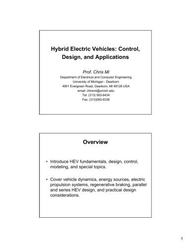 | عنوان اصلی | Presentation – Hybrid Electric Vehicles: Control, Design, and Applications |