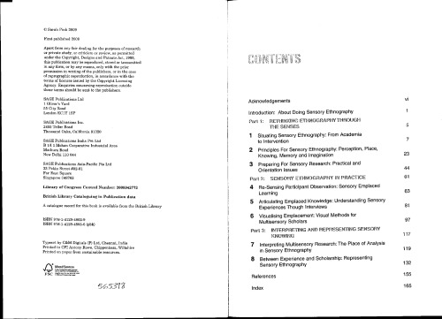 در این کتاب مهم و پیشگامانه، سارا پینک بازاندیشی در فرآیند قوم نگاری را از طریق توجه بازتابی به آنچه که او «حساسیت» تجربه، عمل، و دانش پژوهشگران و کسانی که در تحقیقات آنها شرکت می کنند، پیشنهاد می کند. این کتاب با تکیه بر مثالها و مطالعات موردی از ادبیات رو به رشد در مورد مطالعات قومنگاری حسی و از آثار خود نویسنده، تحلیلی قابل دسترس از جنبههای نظری، روششناختی و عملی انجام مردمنگاری حسی ارائه میکند.