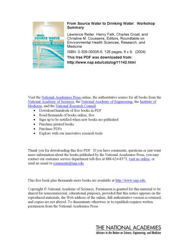 خرید و دانلود نسخه کامل کتاب From Source Water to Drinking Water: Workshop Summary